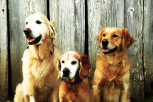 But I’m not going to talk entirely about them, just a few highlights. They are two golden retrievers and one cocker spaniel mix. The cocker is completely blind, and the older golden has had some health issues lately. The younger golden is training to be a search and rescue dog.
