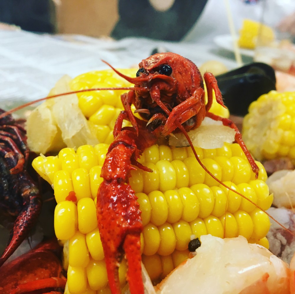 Now the main event of the evening was the boil. And I will be 100% honest with you, this wasn’t my favorite boil recipe. I much prefer the one that Matt’s cousin puts on, but this one wasn’t awful. You could tell that the crawfish were frozen, but other than that everything was pretty tasty. There were mussels, shrimp, crawfish, corn, potatoes, and mushrooms in the mix. I didn’t actually have anything to do with making the boil, since another group in our class was in charge of that recipe. But it was still a good time. It was kind of funny because I was one of the few people who knew the proper way to eat a crawfish, but I was also one of the only ones who hadn’t been to New Orleans and had a true boil down south!