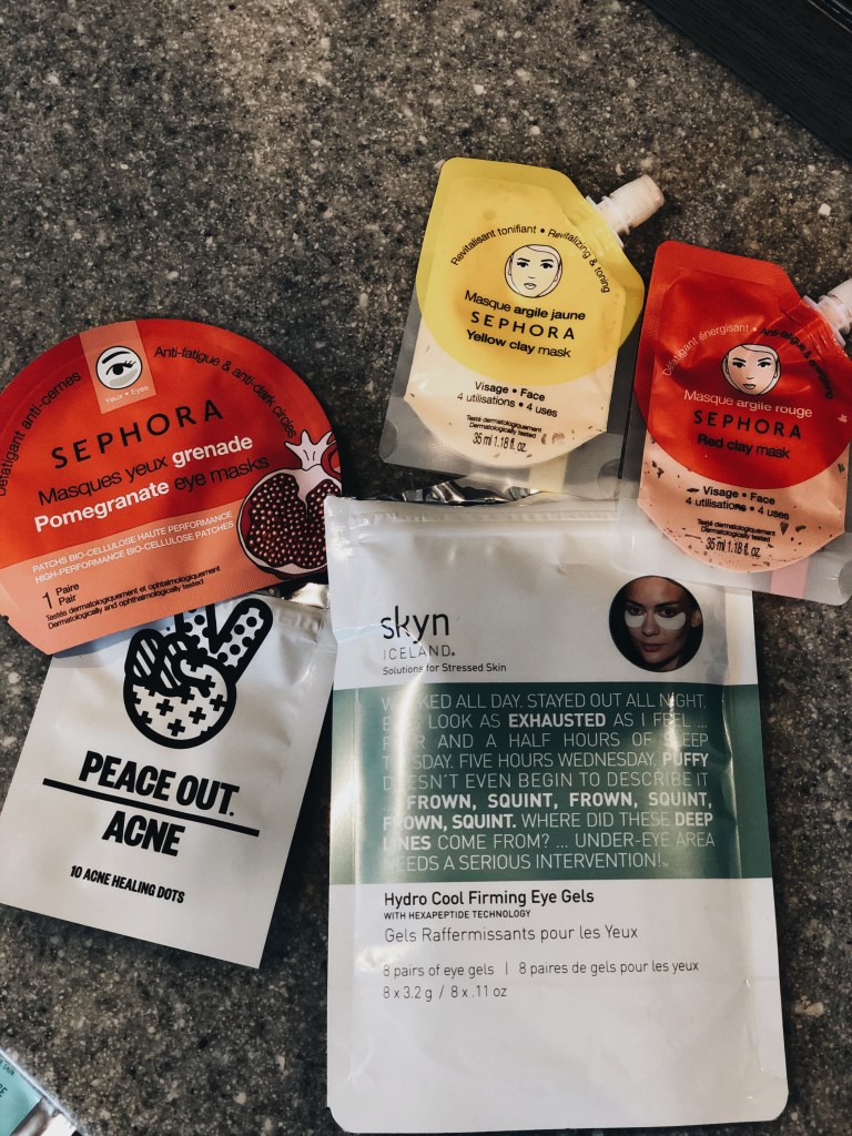 Face masks and eye masks are a total guilty pleasure of mine that I love to wear at least once a week. Those Sephora brand pomegranate eye masks are so refreshing and the smell is not over powering at all. I also love those Peace Out acne dots for healing stubborn cystic acne that I sometimes get.
