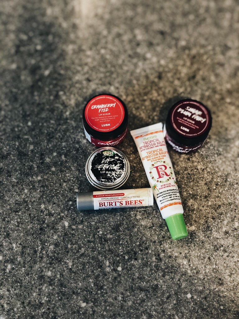 And lastly, lip care. I love those sugar lip scrubs from Lush! They aren’t to harsh and you don’t have to worry about getting any in your mouth since they use good ingredients. Their Lip Service lip balm is nice because it doesn’t have a strong taste to it, so you aren’t compelled to lick it off your lips and make your dry lips worse. I also like the Burt’s Bees silver topped lip balm in a pinch too. However, my favorite lip balm of all time is Smith’s Rosebud Salve. This tropical one is nice and thick without being goopy and the original one is hands down the best lip balm I’ve tried. I’ve been able to find them at Sephora and Ulta stores.