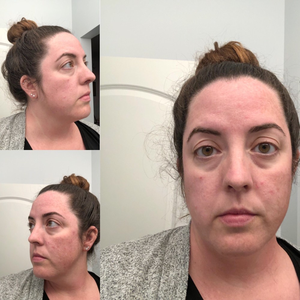 A couple of notes on these photos. As you can see, I have uneven skin tone, hormonal acne breakouts on top of regular old acne, super clogged pores, emerging lines and wrinkles, and of course, bags under my eyes that rival the size of my suitcase. Also, this is the face that has endured 18-ish hours on planes and in airports, sun, sand, and salt water, and a 7 hour puke-a-thon during deep-sea fishing so I’m dehydrated AF.
